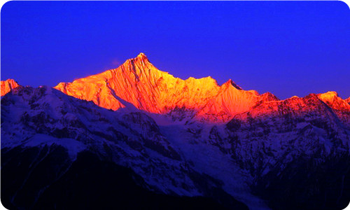 早起后在飛來寺看梅里雪山的日出日照金山,早餐后,驅車從飛來寺出發,經過瀾滄江大橋, 一個小時左右將到達明永村。從明永村開始徒步地球上罕見的低緯度、低海拔的明永冰川。按本地居名的說法:這是座神山,上冰川朝圣必須步行上山以示心誠,但明永冰川實在是險峻無比,因此上明永冰川需要借藏民的幫助用騾子和馬牲口載上去(只能載一程路,徒步來回四到五個小時)?;乇甲訖谧∷?。?。罕甲訖跇藴书g。