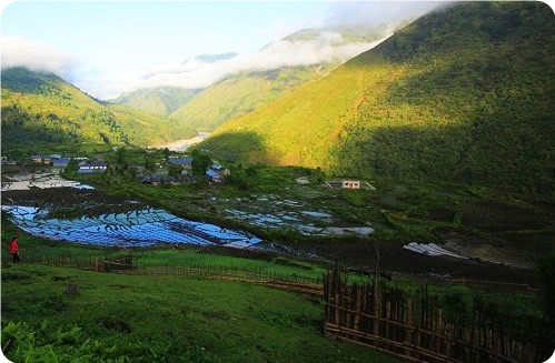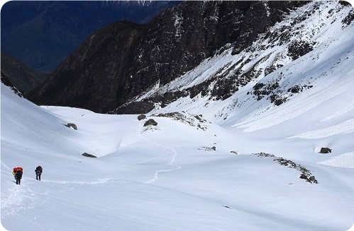 多雄拉山口海拔4,221米,翻越它的過程相當艱難,從寒冷的冰雪世界,到濕潤悶熱的亞熱帶叢林;從山頂的冷杉樹,到叢林中的野芭蕉,一天之內,你可看到不同自然帶的明顯變化。不算難走,但坡度較大。從海拔1,000多米一直上到海拔4,000多米的多雄拉山口需要3小時左右的時間。從這里到營地拉格要2個多小時。拉格是一個由幾個簡易木屋棚組成的接待站。全天徒步20公里。住:拉格接待站。