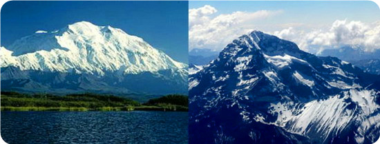 | 麥金利(Mount Mckinley),海拔6193米,為北美洲高峰。當地印第安人稱迪納利峰,位于美國阿拉斯加州中南部迪納利國家公園和禁獵區境內,是阿拉斯加山脈中段山峰,構造上屬太平洋邊緣山帶,形成于侏羅紀末的內華達造山麥金利山風光運動,為一巨大的背斜褶皺花崗巖斷塊山,山勢陡立,有南北2峰,南峰較高,山勢陡立,近2/3的山體終年積雪,發育有規模很大的現代冰川,有些長達48公里,主要有卡希爾特納和魯斯等冰川。山地南坡降水較多,森林上限762米,分布有杉樹、樺樹林等植被。北坡因降水少,雪線高度達1830米。雪峰、冰川相互輝映,綠樹成帶,風景優美。麥金利是世界登山愛好者的匯集之地。 |