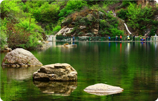 百泉山自然風景區位于懷柔縣峪道河北雁棲湖與幽谷神潭之間,距京城63公里。景區以其特殊的地理環境、雄奇的山體結構、豐富的植被及礦泉資源,構成了得天獨厚的自然景觀。山中隱藏著數百山泉,使峽谷溪流不斷。百泉山四季皆有美景:春天,百花色艷,百鳥爭鳴;夏日,瀑布成群,流泉萬千;秋時,果實累累,紅葉滿山;冬季,銀裝素裹,一派北國風光。