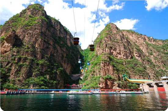 龍慶峽,古稱“古城九曲”,地處于北京市延慶縣古城村西北的古城河口,距離北京城區85公里。峽谷口,一條258米長的巨龍,頭下尾上的懸掛于千仞峭壁,金鱗閃爍,須爪飛揚,這就是堪稱亞州的龍形電梯,游人乘入其間不知不覺之中,即達船臺。而凌空飛越的速滑溜索、驚險刺激的高崖蹦極,欲試心顫,欲罷不能。