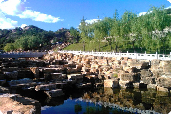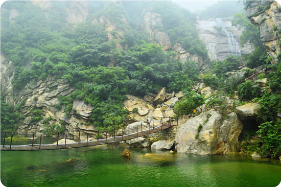 云蒙峽風景區(qū)位于密云縣石城鄉(xiāng)水堡子村西,在密云水庫西側,云蒙山東南坡。距密云縣城約22公里,距北京東直門90公里。云蒙峽風景區(qū)以雄險而曲折的西北-----東南向峽谷為主軸,上下串聯(lián)著數十個不同特色的風景小區(qū)。而且越深入云蒙峽腹地,那些奇峰、怪石、清潭、飛瀑、野花、密林等勝景也越來越多和越優(yōu)美。這里山巒巍峨聳拔,溝壑切割幽深,峰石造型似人似獸,潭瀑交輝若鏡若練。云霧朦朧,變化莫測;花木芬芳,香溢百里。游者處之,無不令人一飽眼福。春季入峽,山花爛漫,桃杏爭艷;仲夏入峽,清泉甘冽,消夏宜人;金秋入峽,紅葉滿山,碩果累累;隆冬入峽,雪嶺晶瑩,冰瀑奪目。