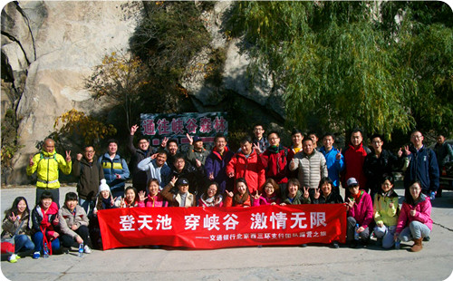 客戶名稱:交通銀行北京天壇支行 活動時間:2013年6月 活動人數:61人 活動地點及形式:延慶水泉溝峽谷—野外徒步穿越 活動項目:齊心協力 T字之謎 鉆木取火 諾亞方舟 中流砥柱 活動描述:由交通銀行北京天壇支行組織,天地之美戶外拓展訓練公司承辦,在北京延慶水泉溝峽谷展開了一天的野外徒步穿越活動,這次拓展讓我們很期待,也很興奮,因為它是在野外進行的,而且山清水秀親身體驗到了大自然的魅力,不僅品嘗了美味的野炊,也感受了野外的生活。 |