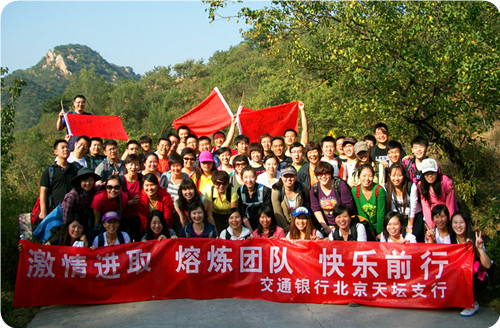 客戶名稱:北京交通銀行東三環支行 活動時間:2013年10月-2批 活動人數:24+23人 活動地點及形式:弗萊宮溫泉山莊,公司內部會議+場地拓展+跑男指壓板與撕名牌 活動項目:延慶媯河國家森林公園—綠色環保騎行 活動描述:由北京交通銀行東三環支行組織,天地之美戶外拓展訓練公司承辦,在北京延慶媯河國家森林公園展開了綠色環保騎行活動。一路騎來,獲得身體上的鍛煉,意志上的磨礪,精神上的超越。 |