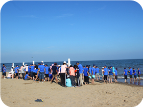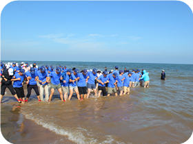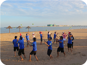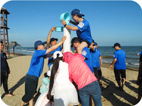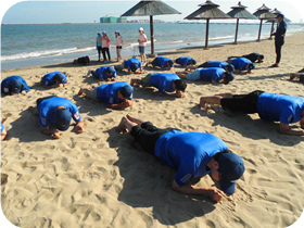 活動描述:由北京華大九天軟件有限公司組織,天地之美戶外拓展訓練公司承辦,在南戴河碧海藍天度假村展開了兩日場地拓展訓練活動,拓展訓練可以磨練個人意志,讓人變得更加堅強;戶外拓展培訓可以培養積極向上的精神,養成良好的人生態度;場地拓展訓練讓個人更好地認清自己,更好地發展自己;拓展訓練可以挑戰自我,突破自我,克服恐懼;戶外拓展訓練可以鍛煉體能,讓我們更加健康。