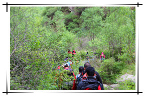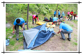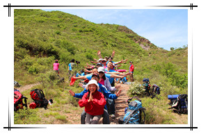 活動(dòng)描述:由聯(lián)合利華組織,天地之美戶外拓展訓(xùn)練公司定制,在北京延慶的后河峽谷進(jìn)行了中高強(qiáng)度的徒步登山拉練活動(dòng),體驗(yàn)了野外露營的樂趣。應(yīng)客戶的需求,量身定制本次活動(dòng)路線及各項(xiàng)活動(dòng)細(xì)節(jié),如只在第一天背負(fù)露營裝備作為體驗(yàn)與拉練,第二天不再負(fù)重行進(jìn)等。創(chuàng)意團(tuán)隊(duì)總是充滿了創(chuàng)作的激情,各種造型的合影創(chuàng)意層出不窮,兩天的活動(dòng)一直伴隨著歡聲與笑語,使員工們的身心得到了徹底的放松,從工作壓力中解脫出來。