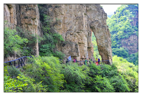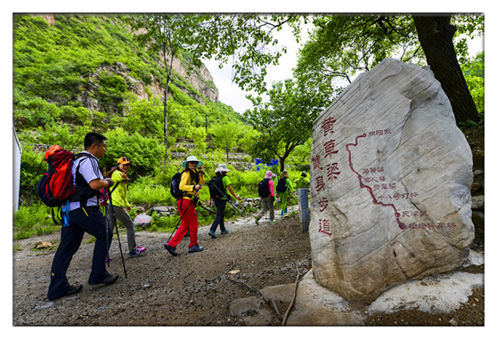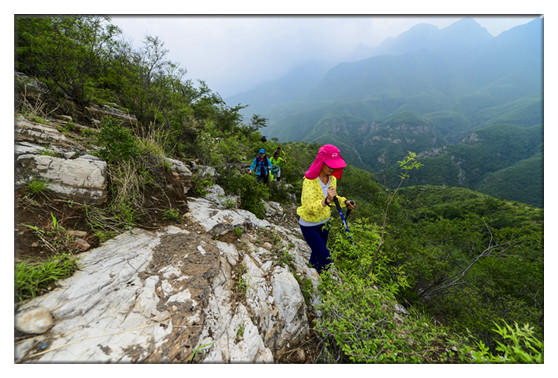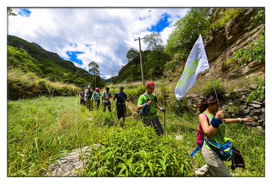 黃草梁,位于門頭溝區西北部齋堂鎮境內,距市區90公里。黃草梁東南距大峪約43公里。海拔1737米,屬西山。與靈山、百花山、妙峰山遙遠相望。為燕山期以來形成的復式向斜山。山勢和緩,頂部呈傾斜的巖溶高原形態。東南側斷層、節理發育,經流水切割形成一組呈北西向平行排列的溝谷,為泥石流多發區。巖石透水性強,頂部較干旱,900米以上的陰坡和溝谷地帶有櫟林、樺楊林及其萌生叢,以下多為灌叢。山麓地帶有核桃、杏、柿樹。黃草梁與靈山、百花山、妙峰山遙遠相望。這里主峰海拔1773米,為北京市西南地區高峰之一。登山遠眺山連山、峰連峰、峰巒疊翠,連綿起伏,直到天邊。如果在這里看山海日出,則是氣象萬千,美不勝收。黃草梁上的沿字號敵臺施工細致,用料精實,雖經四百余年風雨剝蝕,至今仍雄姿依舊。行進途中會有小斷崖兩處,正是考驗團隊精神的絕佳地點。龍門溝全長15公里,奇峰林立,鬼斧神工,蜿蜒曲折,是典型的喀斯特地貌峽谷,成為許多影視劇的拍攝地點,也是每年舉行的北京國際山地徒步大會的必經線路。